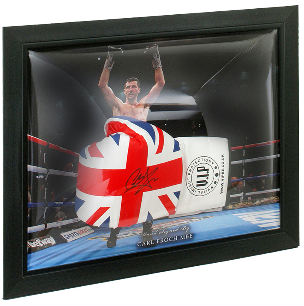 This fantastic domed boxing glove presentation has been personally hand signed by British boxing legend Carl Froch, the former four-time world champion famously known as “The Cobra”.