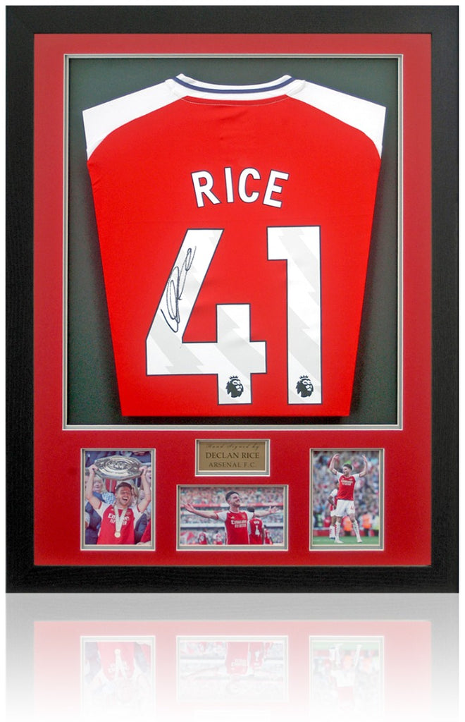 Declan Rice Arsenal Hand Signed Framed Home Football Shirt AFTAL COA