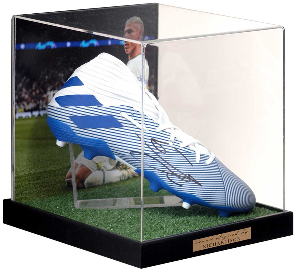 This fantastic piece comes displayed in an acrylic display case on a black wood base with a photograph of Richarlison with a Certificate Of Authenticity issued by AFTAL members The BritishSportsMuseum.com