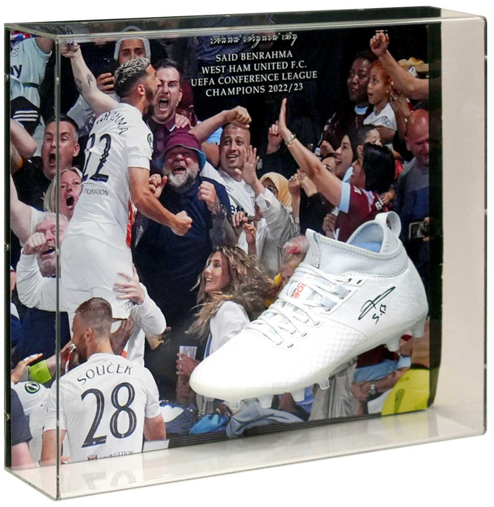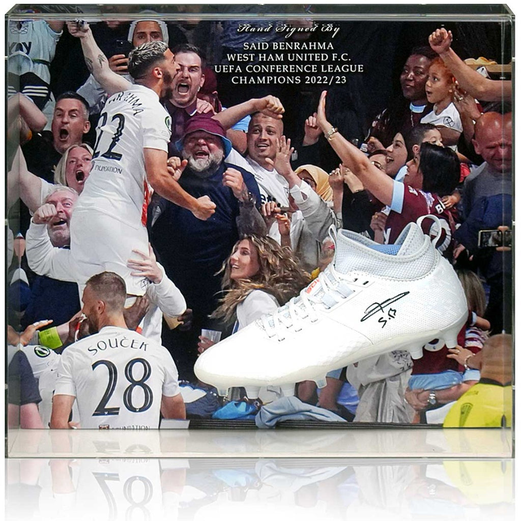 Fantastic football boot presentation hand-signed by Europa Conference League-winning legend, Saïd Benrahma.
