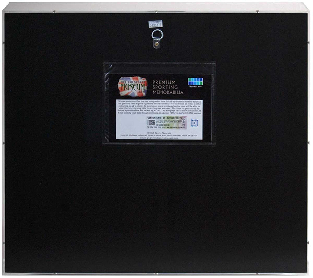 This amazing piece comes mounted in an acrylic display case measuring 46x40x10cm with a Certificate Of Authenticity issued by AFTAL members TheBritishSportsMuseum.com