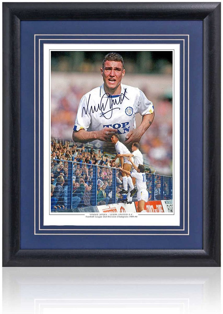 A fantastic hand-signed photomontage of Leeds United legend Vinnie Jones, capturing the toughness and spirit he brought to Elland Road.