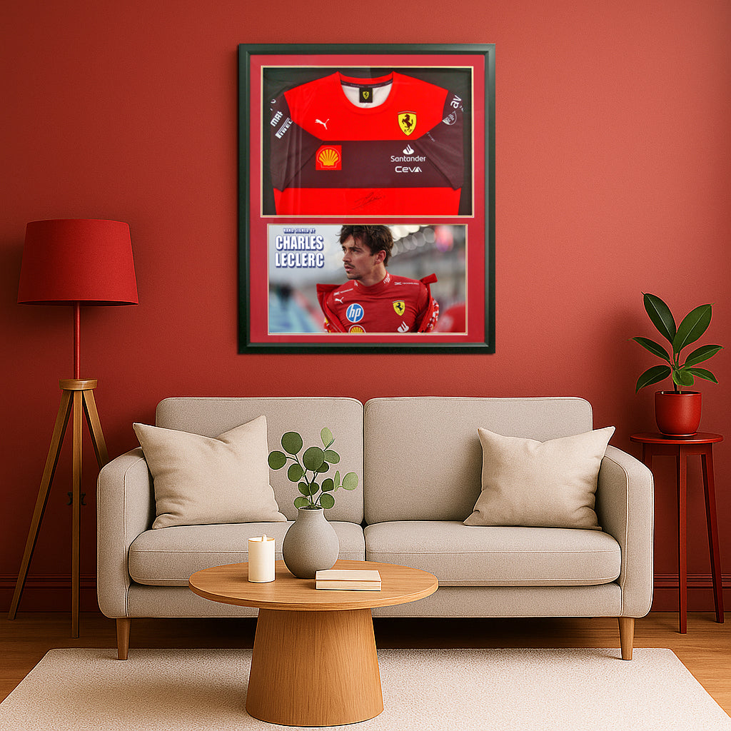 Charles Leclerc Hand Signed Ferrari Formula 1 Large Framed Shirt COA
